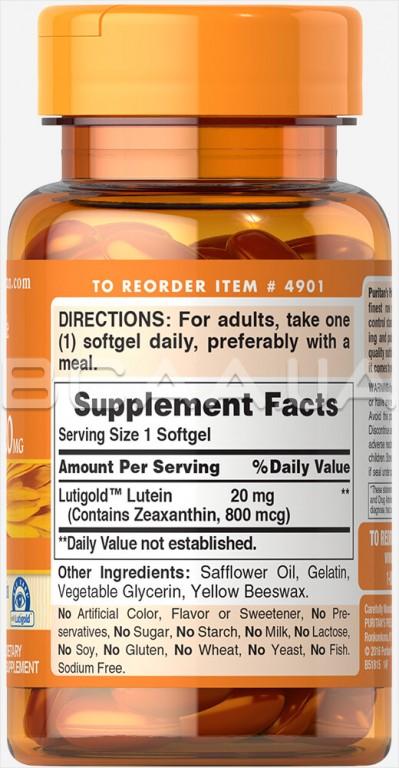 Препарат Lutein 20 mg with Zeaxanthin виготовлений на основі унікальної формули. У складі біодобавки є лютеїн та зеаксантин. Дані мікроелементи є незамінними для організму людини, адже самостійно він їх синтезувати не здатний. Надходять вони разом з їжею, але в не достатній кількості.