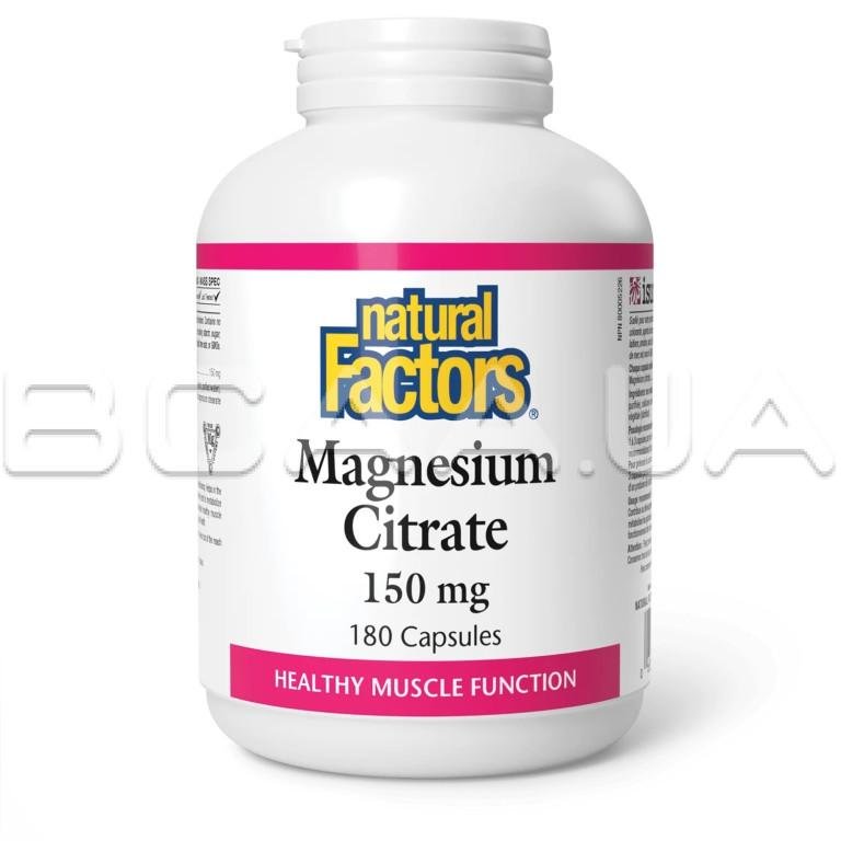 - Natural Factors, Magnesium Citrate 150 mg – це дієтична добавка, розроблена для підтримки різних функцій організму за рахунок надання високозасвоюваної форми магнію.
