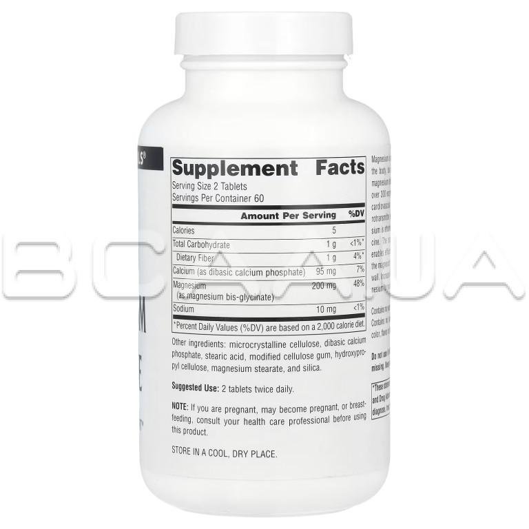 Опис Source Naturals, Magnesium Glycinate, Tablets
