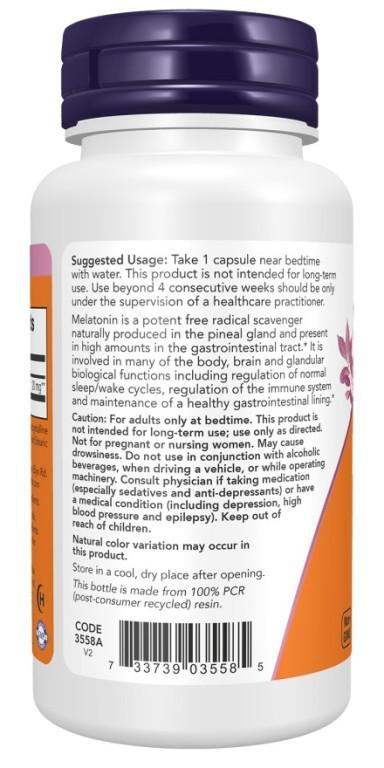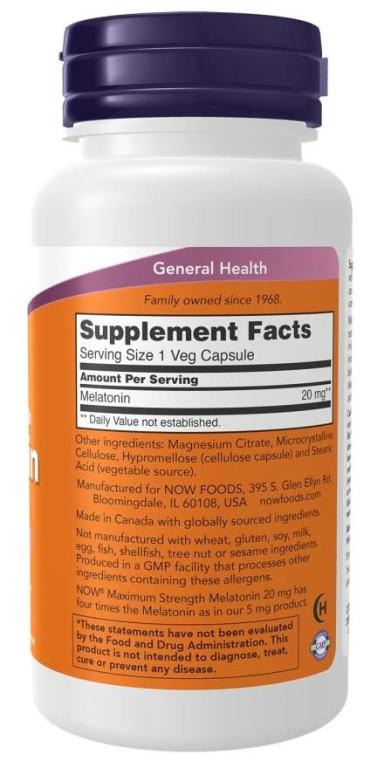 Опис Now Foods, Melatonin 20 mg, Maximum Strength, Veg Capsules