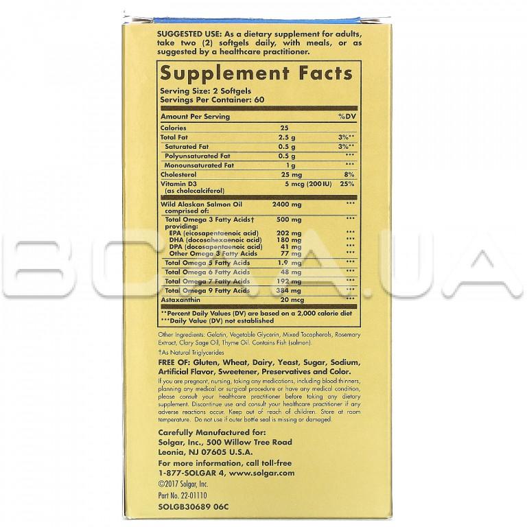 Опис Solgar, Wild Alaskan, Full Spectrum Omega, 120 Softgels