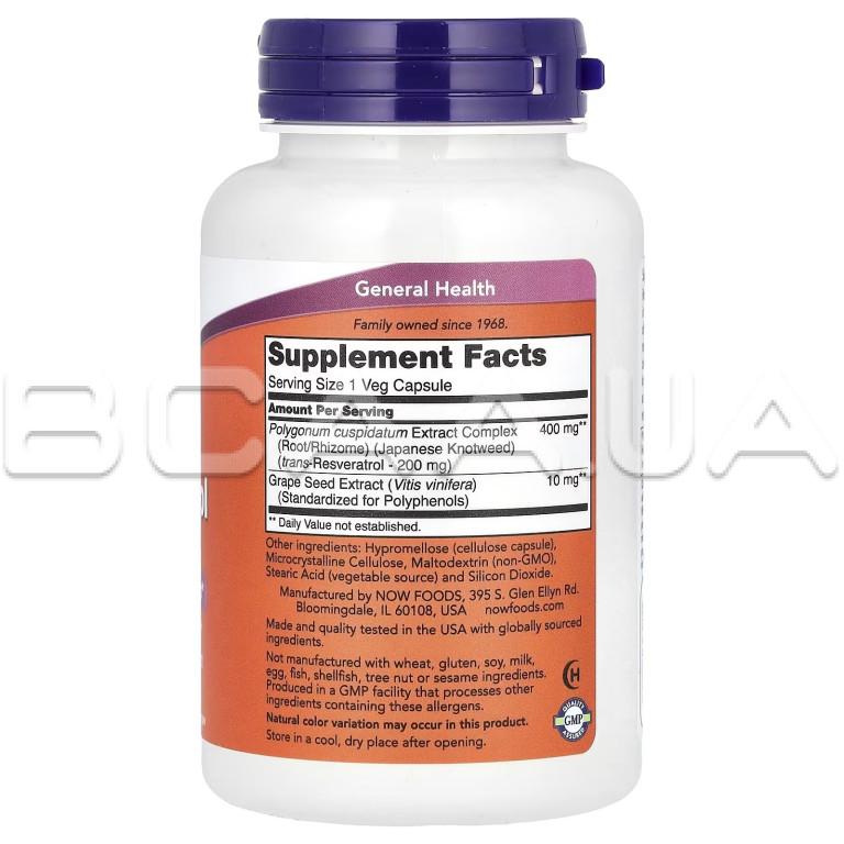Опис Now Foods, Resveratrol 200 mg, Veg Capsules