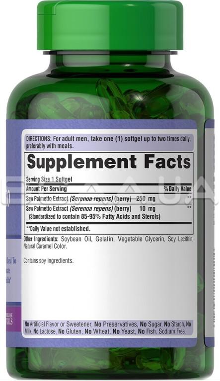 Опис Puritan's Pride, Saw Palmetto Extract, Rapid Release Softgels