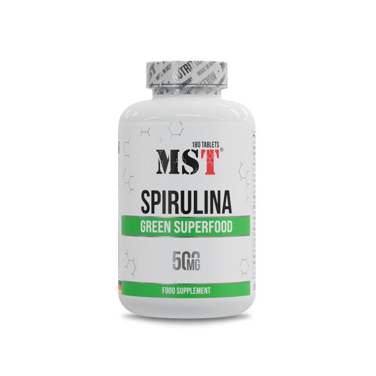 - MST, Spirulina 500 mg, Green Superfood - це багатий на поживні речовини зелений суперфуд, виготовлений з чистої водорості спіруліни, що містить 500 мг на таблетку. Багата рослинним білком, вітамінами, мінералами, хлорофілом та антиоксидантами, спіруліна – це природний спосіб підвищити рівень енергії, зміцнити імунітет та покращити загальне самопочуття.