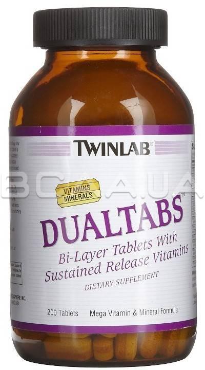 Dualtabs - це нова концепція в мульти вітамінних і мінеральних добавках. Кожна таблетка складається з двох шарів - шару жиророзчинних вітамінів і водорозчинних вітамінів тривалої дії і шару мінералів і травних речовин, швидко вивільняються. Тривала дія водорозчинних вітамінів Dualtabs обумовлена тим, що вони вивільняються і всмоктуються поступово, протягом усього часу проходження через травний тракт. Таке поступове вивільнення дозволяє водорозчинним вітамінам засвоюватися як найповніше.
