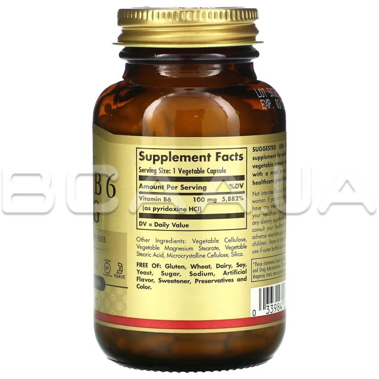 Solgar, Vitamin B6 100 mg, 250 Vegetable Capsules