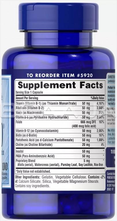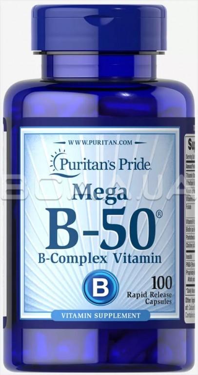 Опис Puritan's Pride Vitamin B-50® Mega Complex 100 Rapid Release Capsules