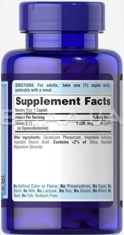 Vitamin B–12 1000 mcg Timed Release 250 Caplets рекомендований вегетаріанцям і людям, старше 50 років, оскільки з віком процес засвоєння В12 протікає складніше.