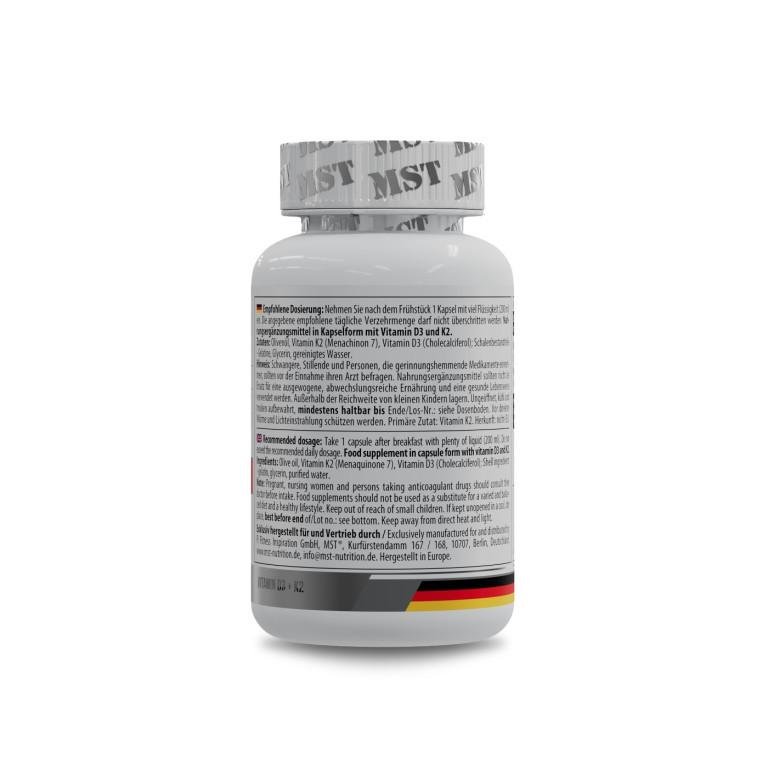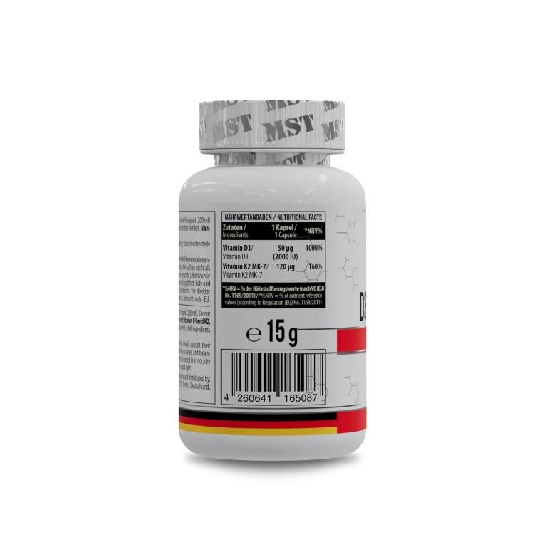 - MST, Vitamin D3 + K2 MK-7 – це преміальна харчова добавка, розроблена для підтримки міцності кісток, здоров'я серцево-судинної системи та імунної функції. Добавка поєднує в собі дві синергетичні поживні речовини – вітамін D3 (холекальциферол) та вітамін K2 (як MK-7) – для оптимізації метаболізму кальцію та підтримки здорових фізіологічних функцій.