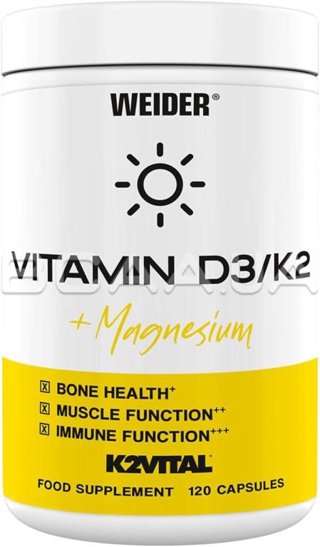 Weider, Vitamin D3/K2 + Magnesium, 120 Capsules