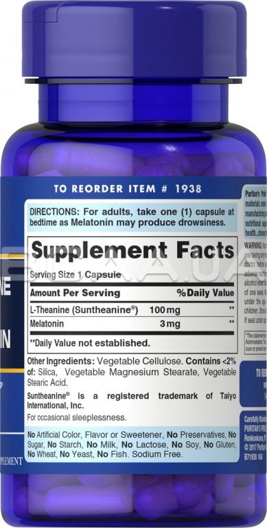 Опис Puritan's Pride L-Theanine Plus Melatonin 30 Сapsules