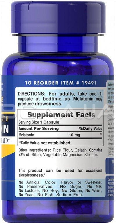 Опис Puritan's Pride, Melatonin 10 mg, Rapid Release Capsules