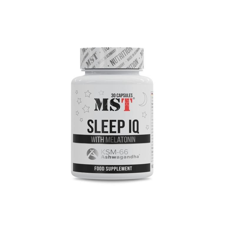 - MST, Sleep IQ with Melatonin – це науково розроблена добавка для підтримки сну, покращення розслаблення та підтримки відновлення протягом ночі. Добавка містить синергетичну суміш мелатоніну, вітаміну B6, магнію, цинку, ашваганди та інших заспокійливих рослинних екстрактів, яка допомагає регулювати природний цикл сну та зменшувати нічний неспокій, не викликаючи сонливості наступного дня.