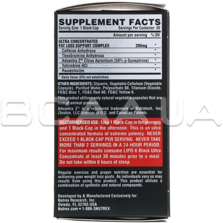 - Lipo-6 Black Ultra Concentrate від Nutrex Research - надпотужний ультраконцентрований жироспалювач, якому немає аналогів серед препаратів для схуднення.