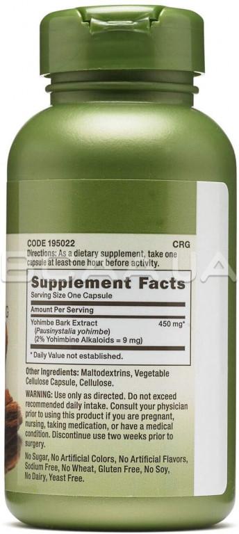 Опис Gnc Yohimbe Extract 450 mg 100 Capsules