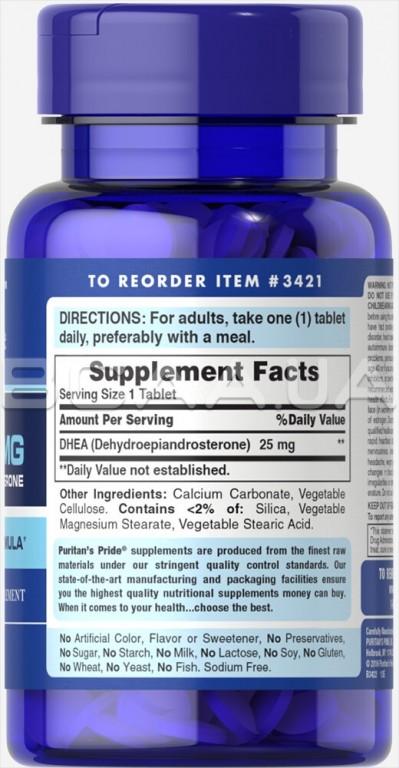 Описание Puritan's Pride, DHEA 25 mg, Tablets