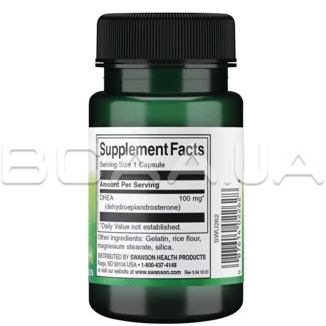 - ДГЭА (дегидроэпиандростерон) является предшественником эстрогена и тестостерона. Добавка Swanson, DHEA 100 mg, Maximum Strength обладает омолаживающим эффектом и будет полезена как мужчинам, так и женщинам, обеспечивая широкий спектр преимуществ: от здоровья костей до повышения сексуальной активности.