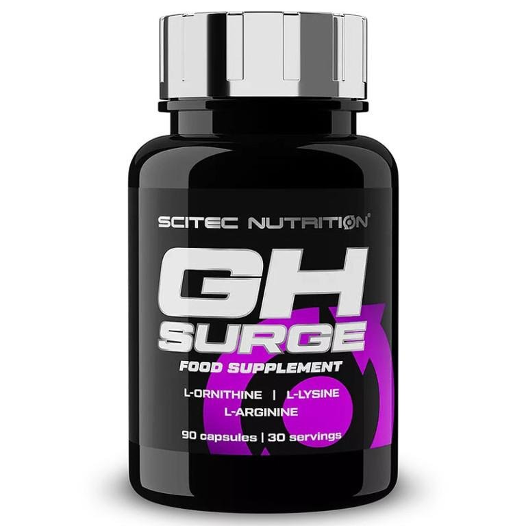 - Scitec Nutrition, GH Surge поможет Вам усиливать выработку гормона роста человека - англ. Growth hormone (GH). Дело в том, что с годами уровень гормона роста в организме уменьшается, что приводит к потере мышечной массы и накапливанию излишнего жира в организме. Кроме того гормона роста является важным фактором, позитивно влияющим на спортивные результаты и сжигает лишний жир. Формула включает аминокислоты, которые синергетически дополняют друг друга: L-аргинин, L-лизин и L-орнитин. Эти аминокислоты дают возможность вашему организму качественно и безвредно повысить выработку гормона роста.