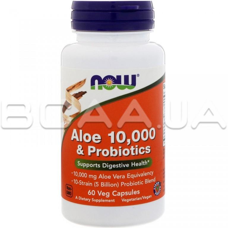 Описание Now Foods Aloe 10,000 & Probiotics 60 Veg Capsules