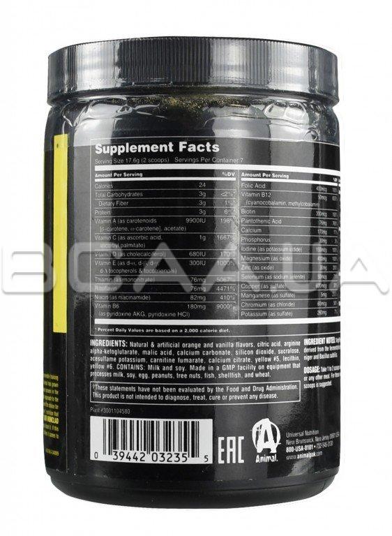 - Universal Nutrition Animal Pak Powder - занимает ключевое место в жизни спортсменов и теперь в порошковой форме. Сбалансированный комплекс нутриентов, которые способны сделать тренировку продуктивнее, а результат очевиднее. Формула уже стала легендой, включающей витаминно-минеральную смесь, сдобренную пищеварительными ферментами и белками. Активные вещества Animal Pak предложены в порошке, а это значит, что вы получаете наиболее быстрое усвоение! Легендарная добавка изменила привычный расклад среди спортивных продуктов: всё необходимое заключено в единый комплекс и исключает потребность в самостоятельном составлении «рациона силы».