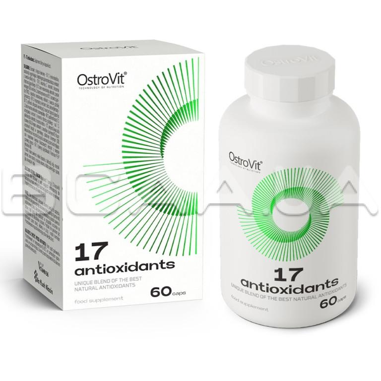 - Ostrovit, 17 Antioxidants — это диетическая добавка, которая является источником ценных активных веществ, таких как ликопин, витамин B6, коэнзим Q10 или альфа-липоевая кислота, в том числе экстракт корневища куркумы, стандартизированный на 95% куркуминоидов, экстракт шиповника, стандартизированный на 70% витамина C, экстракт листьев зеленого чая, стандартизированный на 50% полифенолов.