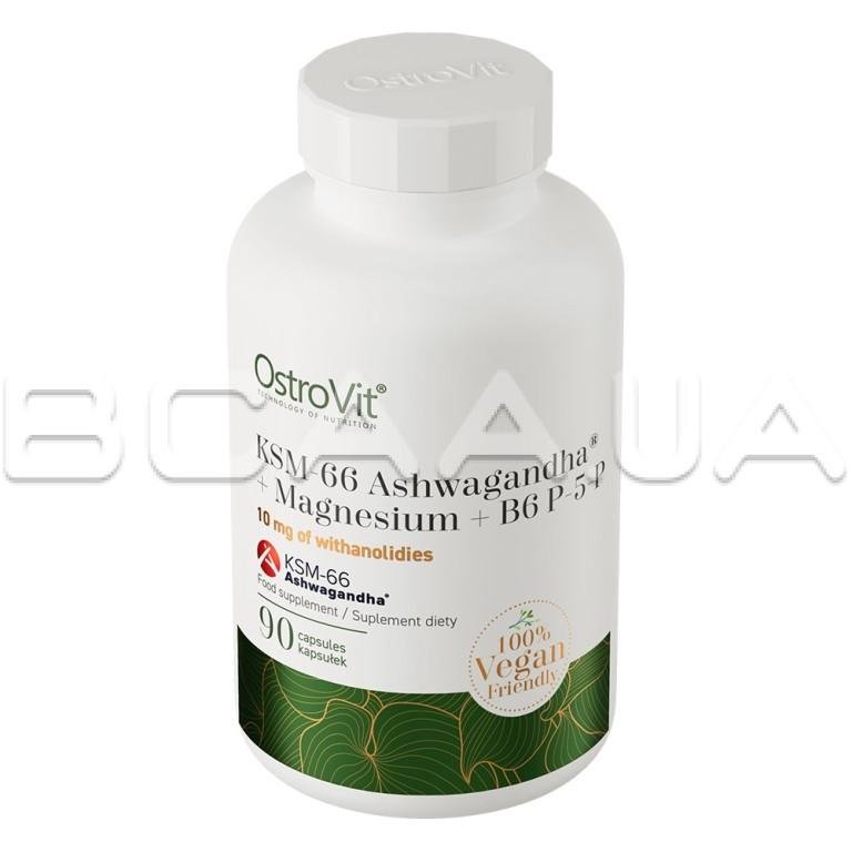 - Ostrovit, KSM-66 Ashwagandha + Magnesium + B6 P-5-P Vege — это высококачественная биологически активная добавка, являющаяся источником ценных ингредиентов: магния, витамина B6 и экстракта корня ашваганды KSM-66.