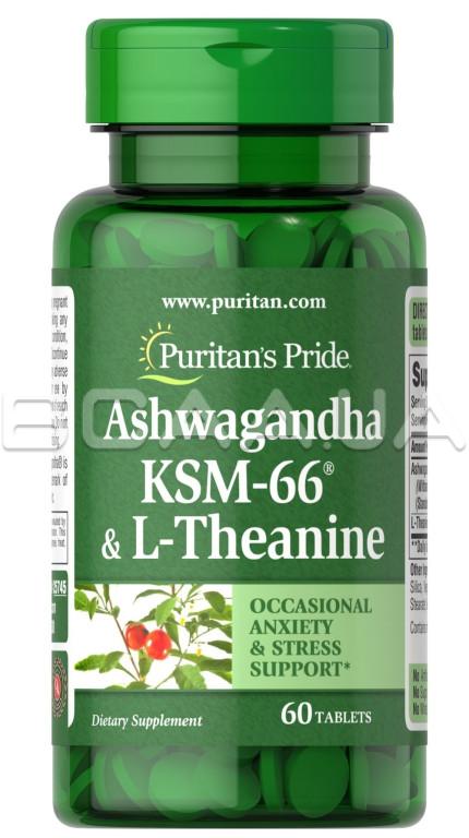 - Puritan's Pride Ashwagandha KSM-66® & L-Theanine — это пищевая добавка, предназначенная для поддержания спокойного и расслабленного настроения. Каждая порция из двух таблеток содержит 600 мг экстракта ашваганды KSM-66® и 200 мг L-Theanine. Ашваганда — это традиционная трава, известная своими адаптогенными свойствами, помогающая организму справляться с периодическим стрессом и беспокойством. L-Theanine, аминокислота, содержащаяся в зеленом чае, дополняет ашваганду, поддерживая центры настроения в мозге и способствуя концентрации, вниманию и сосредоточенности. Эта комбинация направлена на естественное снятие периодического стресса и улучшение общего самочувствия.