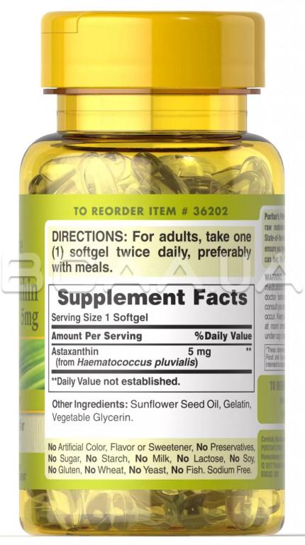 Описание Natural Astaxanthin 5 mg 30 Rapid Release Softgels