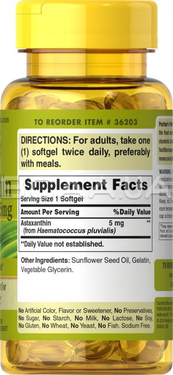 Описание Natural Astaxanthin 5 mg 60 Rapid Release Softgels