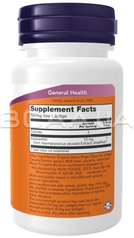 Now Foods, Astaxanthin 10 mg, Extra Strength, 30 Softgels