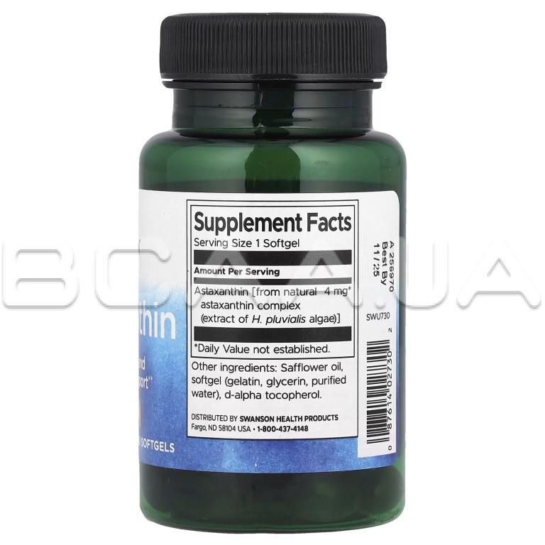 Описание Swanson, Astaxanthin 4 mg, Softgels