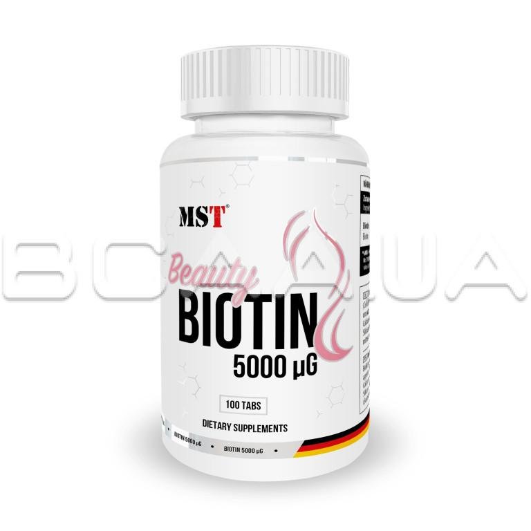- MST, Beauty Biotin 5000 mg — это высокоэффективная пищевая добавка, предназначенная для поддержания здоровья волос, кожи и ногтей. Каждая таблетка содержит 5000 мкг биотина (витамина B7/витамина H), водорастворимого витамина группы B, необходимого для различных метаболических процессов и клеточных функций.