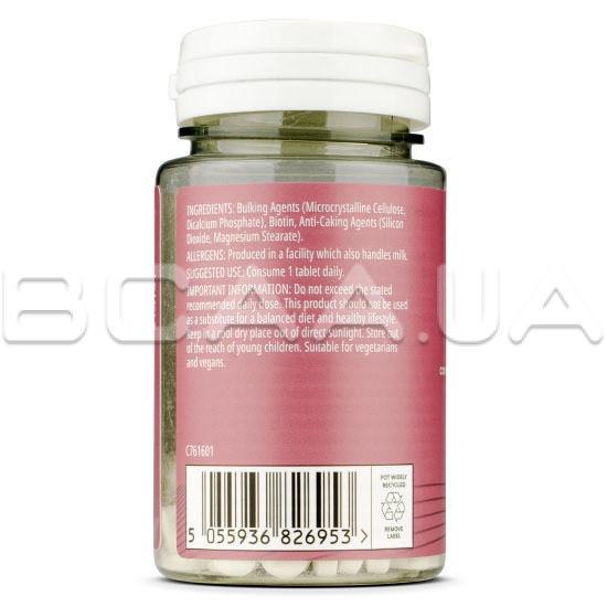 Другие ингредиенты: Наполнители (микрокристаллическая целлюлоза, дикальцийфосфат), биотин, антислеживатели (кремнезем, стеарат магния).