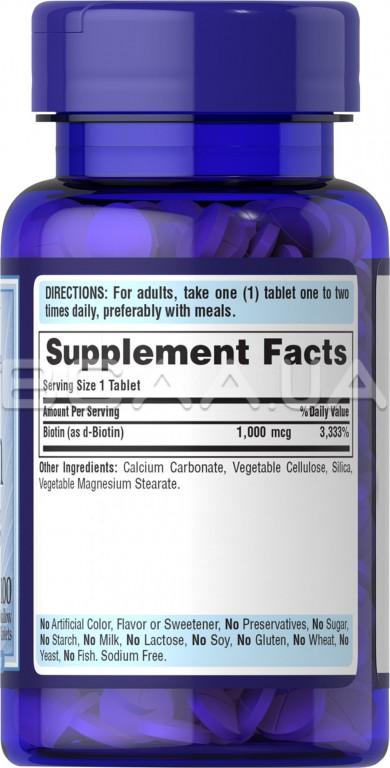 Описание Puritan's Pride, Biotin (Биотин) 1000 mcg, 100 Coated Tablets
