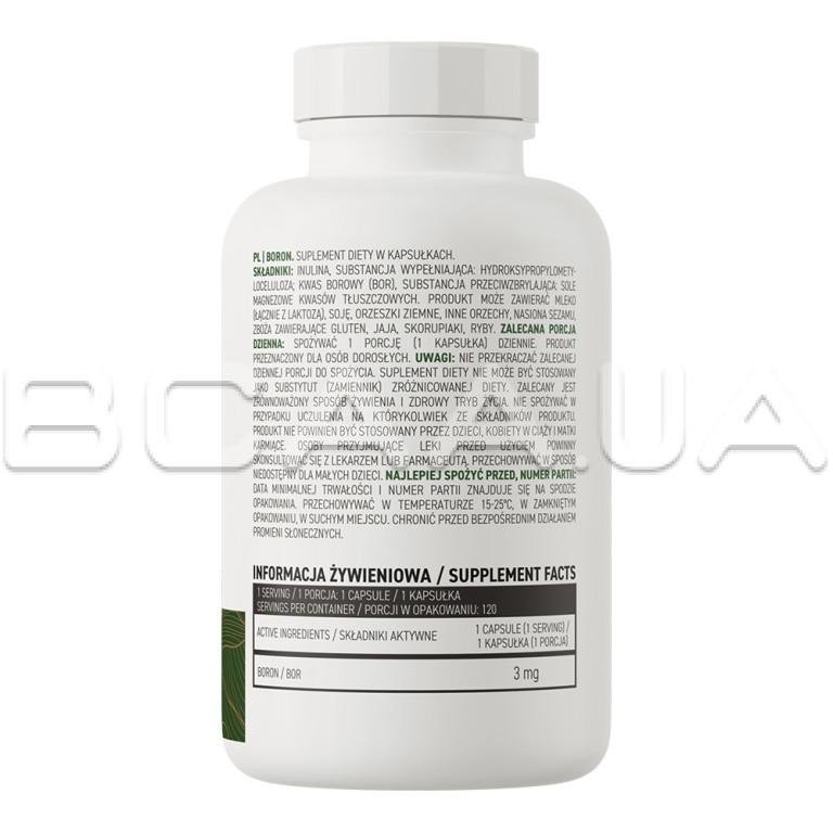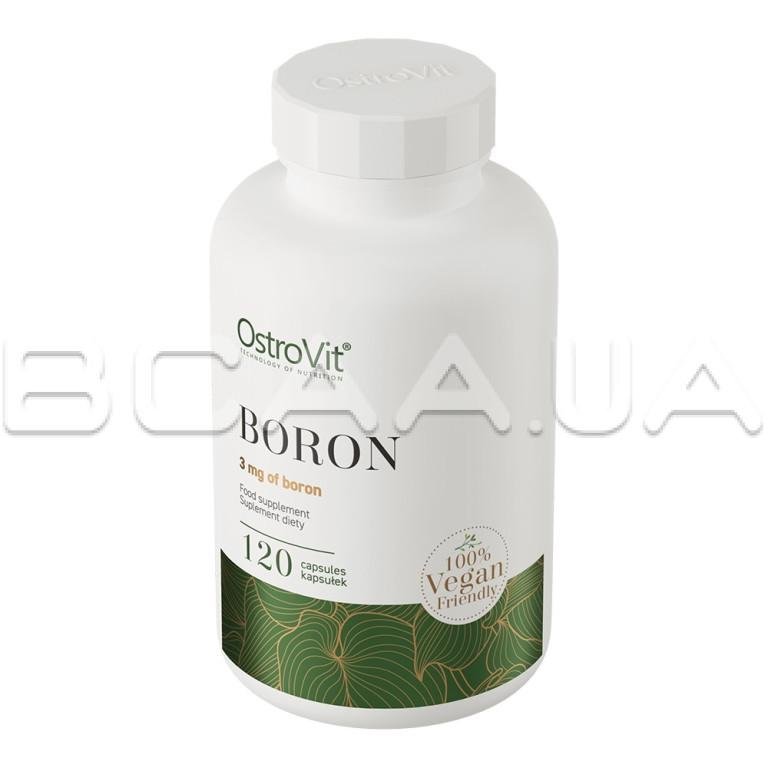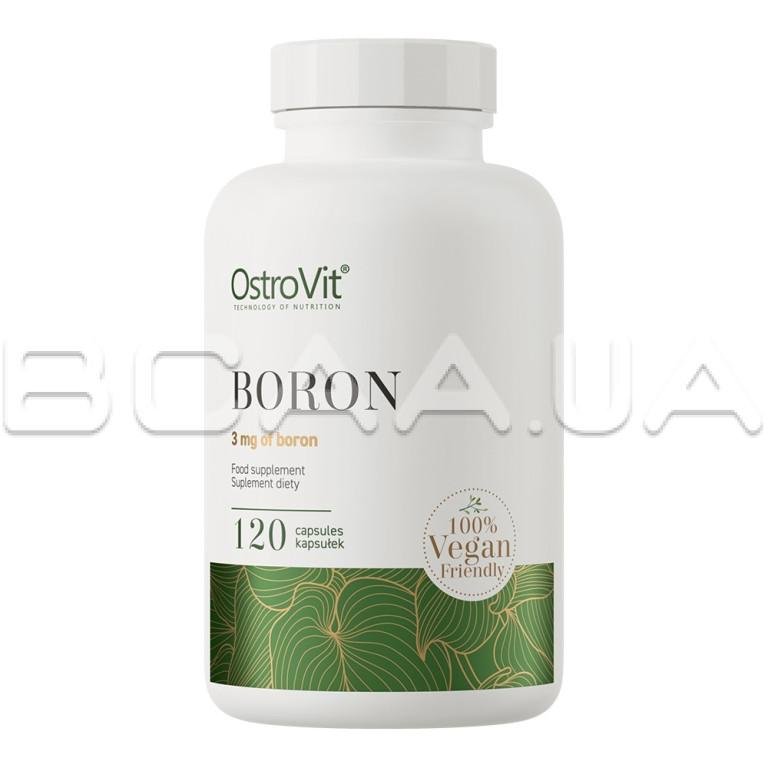 - Ostrovit, Boron Vege содержит 3 мг бора на капсулу в чистой, подходящей для веганов формуле. Бор — незаменимый микроэлемент, играющий ключевую роль в гормональном балансе, прочности костей, когнитивных функциях и общем жизненном тонусе. Он также способствует усвоению важных питательных веществ, таких как кальций, магний и витамин D.
