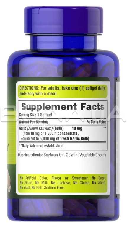 Описание Puritan's Pride, Garlic Oil 5000 mg, Rapid Release Softgels