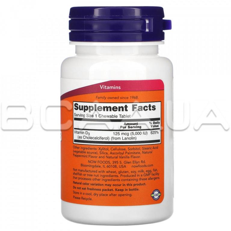 Now Foods, Chewable Vitamin D-3 (Витамин Д), Natural Mint, 5,000 IU, 120 Chewables