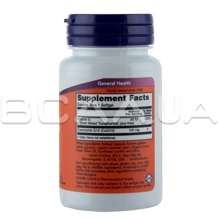 Описание Now Foods CoQ10 100 mg, With Vitamin E 50 Softgels