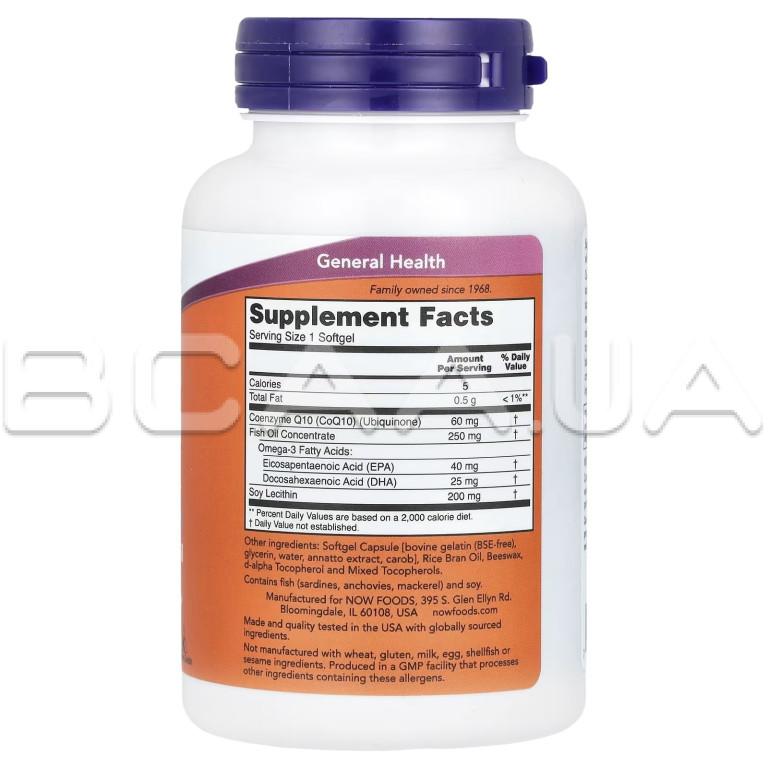 Описание Now Foods, CoQ10 60 mg + Fish Oil, Softgels