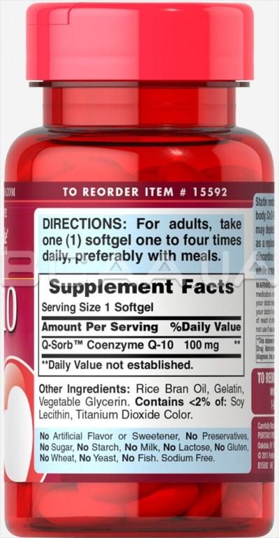 Q-SORB Co Q-10 - высококачественный коэнзим от компании Puritan's Pride, создан в помощь вашему организму, для замедления процессов старения. Всем известно, что со временем его выработок уменьшается и человеческий организм значительно ослабевает. Ведь основной его функцией, является обеспечение энергией всех клеток тела, кроме того, он является мощным антиоксидантом, защищающим жирные кислоты от окисления свободными радикалами и стабилизирует мембранные клетки, тем самым обеспечивает жизненно важный обменный процесс. Но в первую очередь, он необходим сердечной мышце, энергетические затраты которой самые высокие. Если вы хотите поддержать свой организм здоровым, данная добавка, то что вам нужно.
