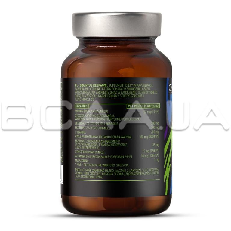 - Ostrovit, Braintus Respawn – это комплексная пищевая добавка, которая является источником девяти различных соединений, включая магний, экстракт шишек хмеля и мелатонин в форме капсул.