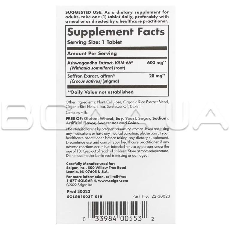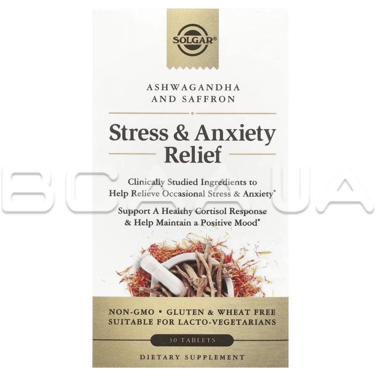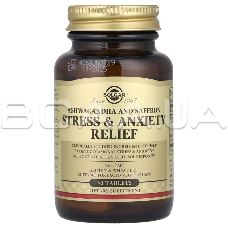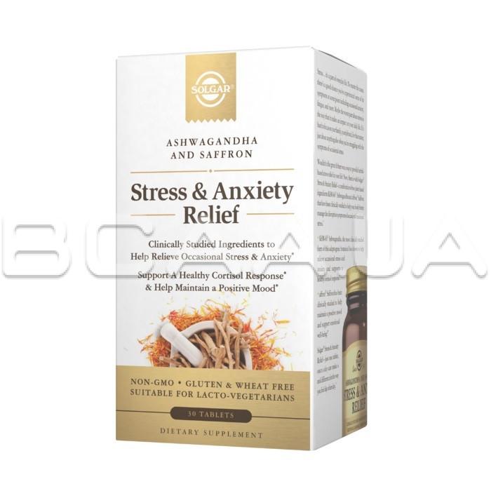 - Пищевая добавка Solgar®, Stress & Anxiety Relief помогает вашему организму лучше справляться с разрушительными симптомами периодического эмоционального стресса, поддерживать здоровую реакцию кортизола и сохранять позитивное настроение.