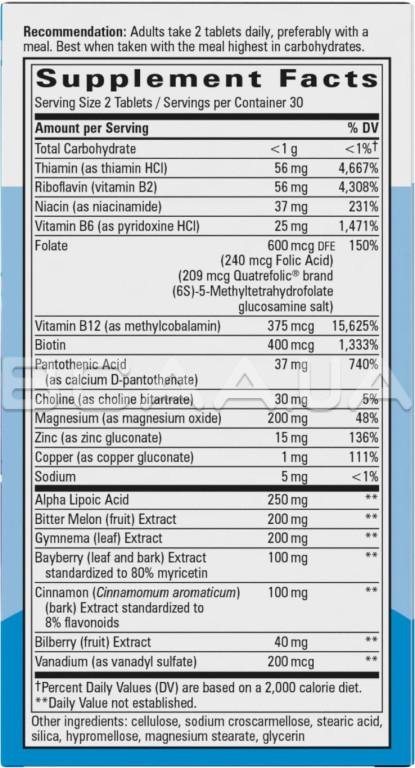 Рекомендации по применению: Принимать по 2 таблетки в день, желательно во время еды. Лучше всего принимать вместе с едой с высоким содержанием углеводов.