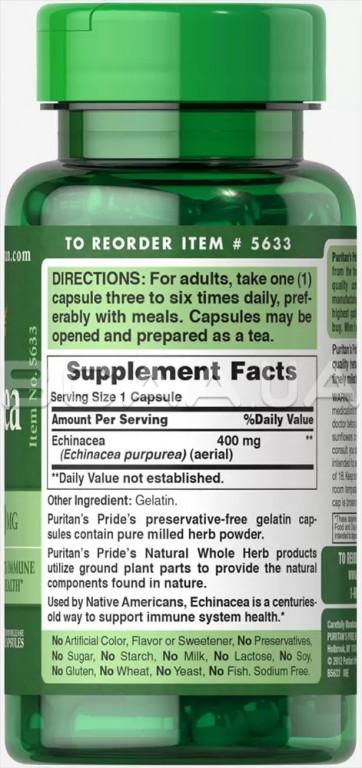 - Поддерживайте свою иммунную систему естественным образом с помощью Puritan's Pride, Echinacea 400 mg, традиционной травяной добавки, созданной для того, чтобы помочь вам оставаться здоровыми круглый год.