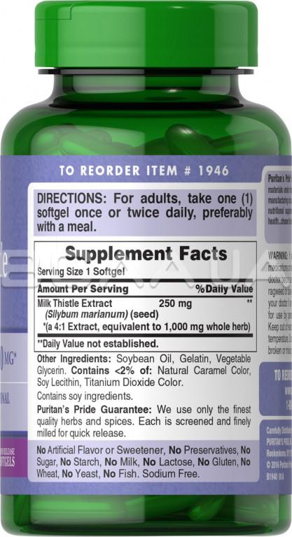 Описание Puritan's Pride, Milk Thistle Extract 1000 mg, Rapid Release Softgels