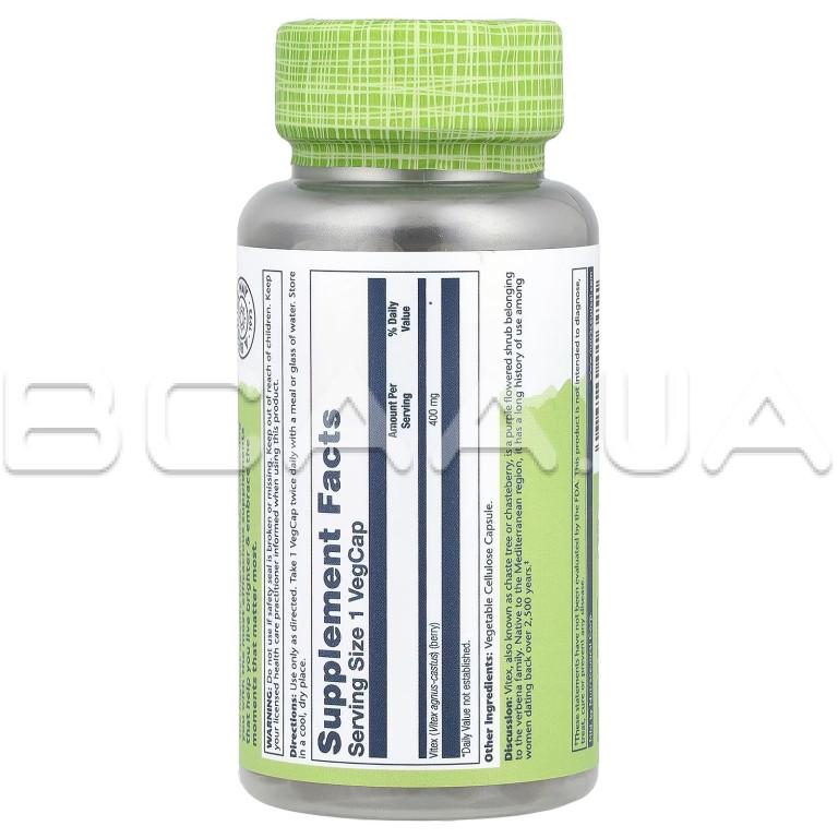 - Solaray, True Herbs, Vitex 400 mg — это травяная диетическая добавка, предназначенная для поддержания гормонального баланса, особенно у женщин.