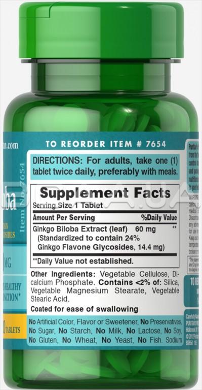 Описание Puritan's Pride, Ginkgo Biloba (гинкго билоба) Standardized Extract 60 mg 120 таблеток