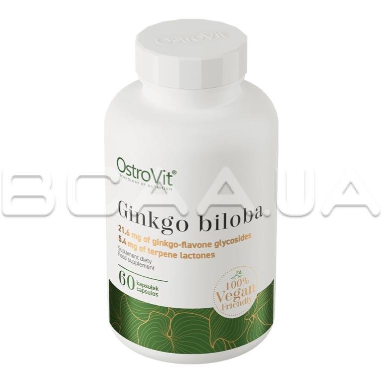 - Ostrovit, Ginkgo Biloba Vege — это высококачественная пищевая добавка, которая содержит экстракт листьев гинкго билоба, стандартизированный до 24% гикофлавоногликозидов и 6% терпеновых лактонов.