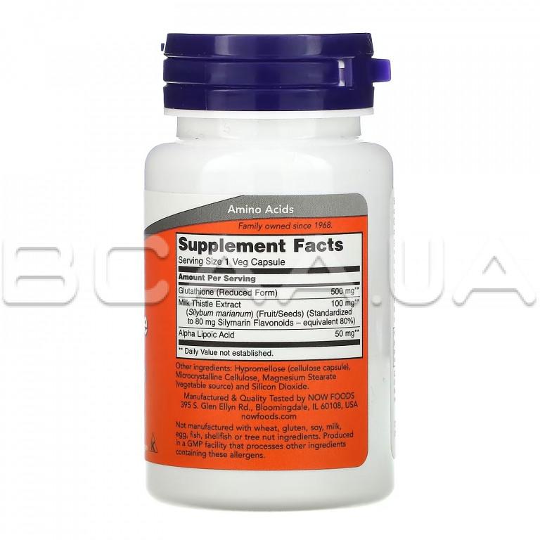 Описание Now Foods, Glutathione 500 mg (Глутатион), 30 Veg Capsules
