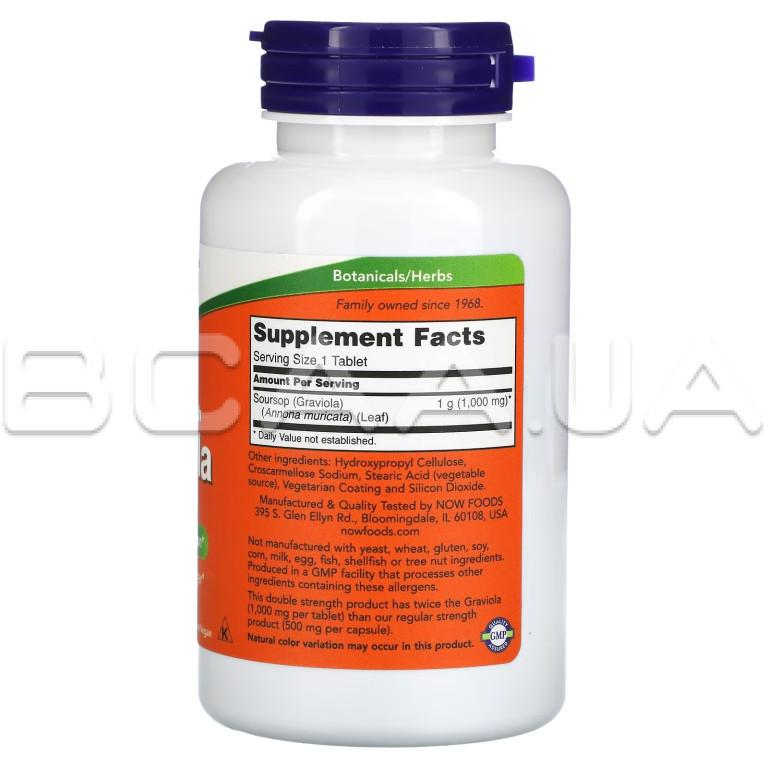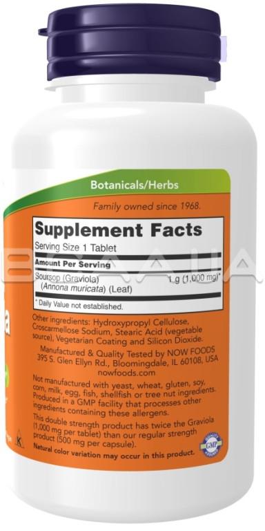 Описание Now Foods, Graviola 1000 mg, Double Strength, Tablets